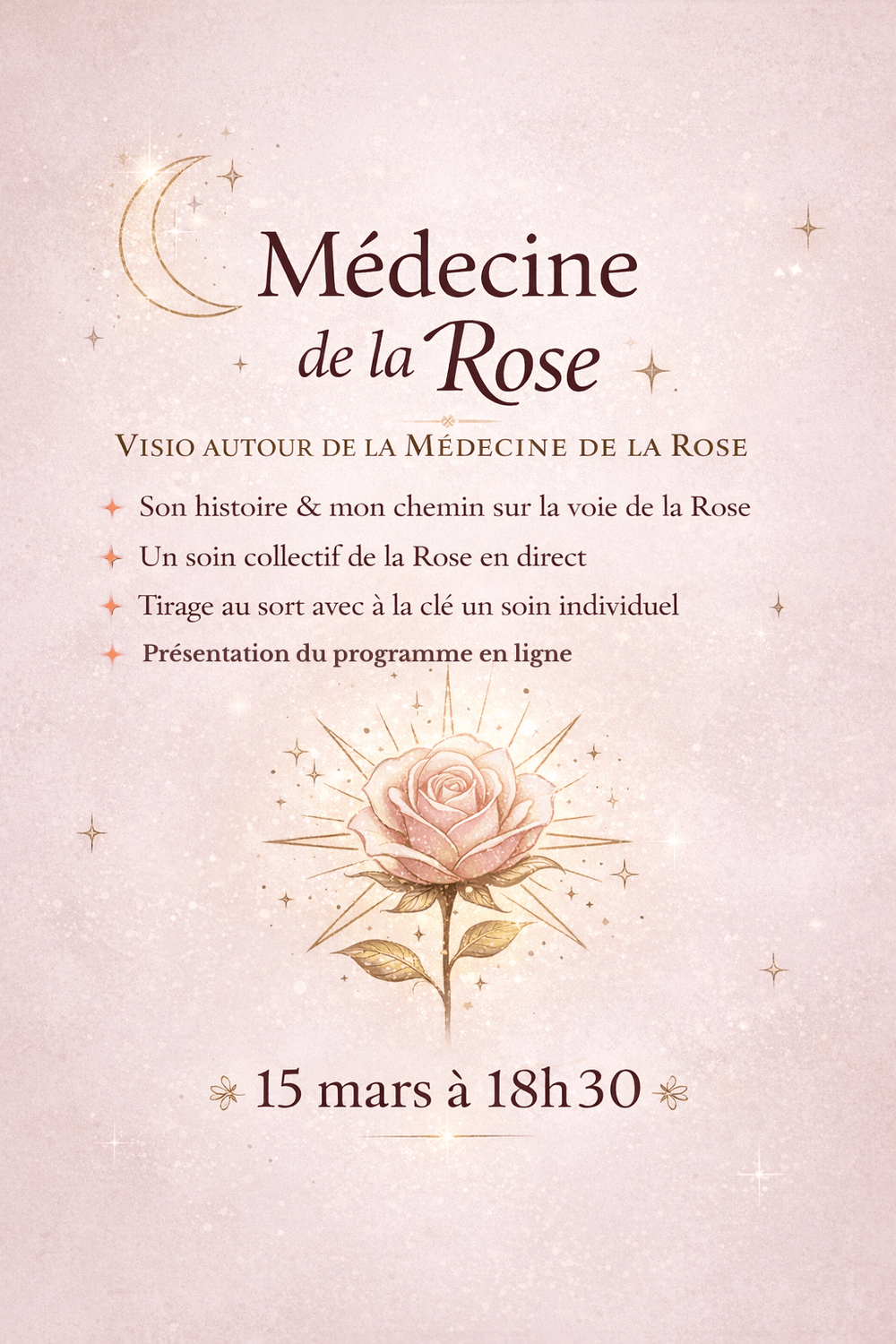 Je suis heureuse de t'inviter à cette soirée exceptionnelle en visio autour de la Médecine de la Rose.