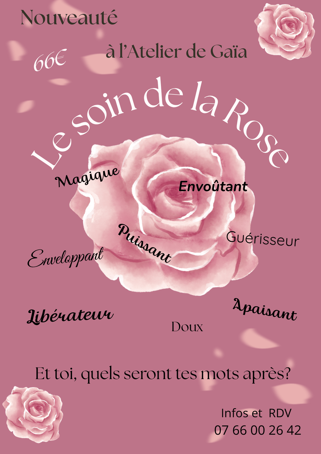 Il n'y a pas vraiment de mots pour expliquer le Soin de la Rose...Le mieux est de le recevoir en soi, le vivre et ressentir....